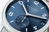 NOMOS Glashütte'nin Club Sport neomatik 42 date blue modeli, yüksek hassasiyetli otomatik mekanizmasıyla dikkat çekiyor. DUW 6101 neomatik kalibre ile donatılan bu saat, sadece 10.2 mm kalınlığıyla zarif bir görünüm sunuyor. Su geçirmezlik özelliği 300 metreye kadar dayanıklıdır. Mavi galvanizeli kadranı, Superluminova ile aydınlatılan rakamlar ve iğne detaylarıyla şıklığı ön plana çıkarıyor. Paslanmaz çelik bileziği, kişisel ayarlara olanak tanıyor.