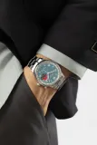 NOMOS Glashütte'nin Club Sport neomatik Worldtimer Glacier modeli, zarif tasarımı ve fonksiyonelliğiyle dikkat çekiyor. 40 mm çapındaki paslanmaz çelik kasa, 10 atm su geçirmezlik özelliği ile her türlü aktiviteye uygun. Mavi-gri ana kadranı ve bej şehir halkası, gün ve gece fazlarını renklerle ayırt ediyor. Otomatik mekanizması, 24 saatlik ikinci zaman dilimi göstergesi ile dünya genelindeki tüm saat dilimlerini anlık olarak takip etmenizi sağlıyor. Sadece 175 adet üretilen bu özel saat, şıklığı ve işlevselliği bir arada sunuyor.