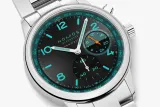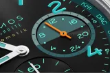 NOMOS Glashütte'nin Club Sport neomatik Worldtimer Trace modeli, otomatik mekanizmasıyla dünya genelindeki 24 saat dilimini gösterir. 40 mm çapındaki paslanmaz çelik kasa, 9.9 mm yüksekliğiyle zarif bir profile sahiptir. Siyah ve turkuaz tonlarındaki kadranı, gece hayatının ışıltısını yansıtırken, Superluminova kaplamalı saat işaretleri düşük ışıkta bile mükemmel okunabilirlik sunar. Suy geçirmezlik özelliği ile 10 atm derinliğe kadar dayanıklıdır. Sınırlı sayıda üretilen bu saat, şıklığı ve işlevselliği bir araya getiriyor.