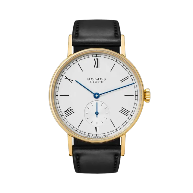 NOMOS Glashütte'nin Ludwig gold modeli, modern dünyaya uyum sağlayan geleneksel bir şıklık sunuyor. 18 ayar altın kasası ve zarif Roma rakamlarıyla klasik bir zarafet sergileyen bu saat, el yapımı NOMOS kalibresi ile hassasiyet ve zarafeti bir araya getiriyor. Horween Genuine Shell Cordovan deri kayışı, saatin estetik bütünlüğünü tamamlıyor. İnce yapısı ve uyumlu oranlarıyla, her anınıza zarafet katacak bir aksesuar.