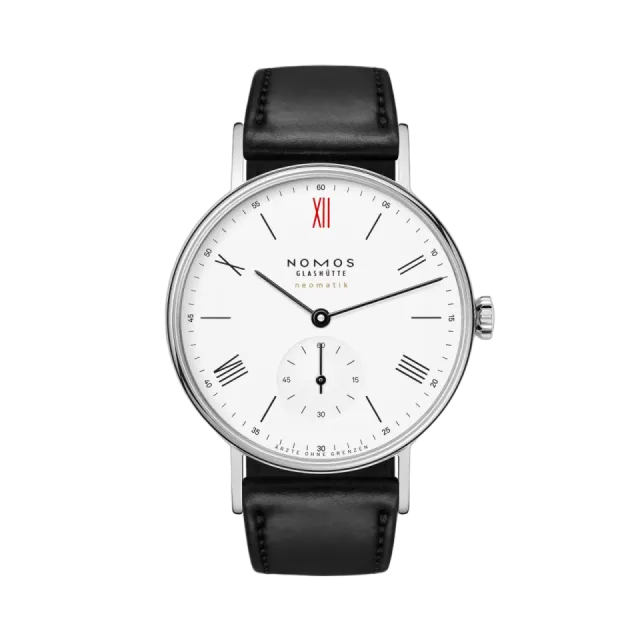 Ludwig neomatik für Ärzte ohne Grenzen, NOMOS Glashütte'nin zarif ve anlam dolu bir saatidir. Sadece 250 adet üretilen bu otomatik saat, 36.4 mm çapında ve 7 mm yüksekliğinde ince bir paslanmaz çelik kasaya sahiptir. Beyaz emaye kadranı, siyah detaylarla şıklığı yansıtırken, kırmızı 12 rakamı acil yardım çağrısını simgeler. Her bir saat, dünya genelinde yardım çalışmalarına katkıda bulunarak, hem stil hem de anlam sunar.