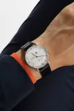 Metro date power reserve, Mark Braun tarafından tasarlanan zarif ve genç bir mekanik saat. 37 mm çapı ile dikkat çekerken, ince yapısı sayesinde bilekte mükemmel bir uyum sağlar. El yapımı NOMOS kalibre DUW 4401, 42 saate kadar güç rezervi sunar. Cam arka kapak, mavi denge yayını sergilerken, zarif kollar ve renkli saat indeksleri tasarımın şıklığını artırır. Glashütte'de üretilen bu saat, hem erkekler hem de kadınlar için ideal bir seçimdir.