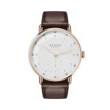 NOMOS Glashütte'nin Metro rose gold neomatik 39, 18 ayar altın kasasıyla zarafeti ve şıklığı bir araya getiriyor. 38.5 mm çapında, sadece 8.4 mm yüksekliğiyle dikkat çeken bu otomatik saat, DUW 3001 mekanizmasıyla yüksek hassasiyet sunuyor. Gri indeksler ve rose altın kollarıyla zarif bir görünüm sergileyen Metro, hem günlük kullanım hem de özel anlar için mükemmel bir tercih. Suya dayanıklılığı ile de pratiklik sağlıyor.