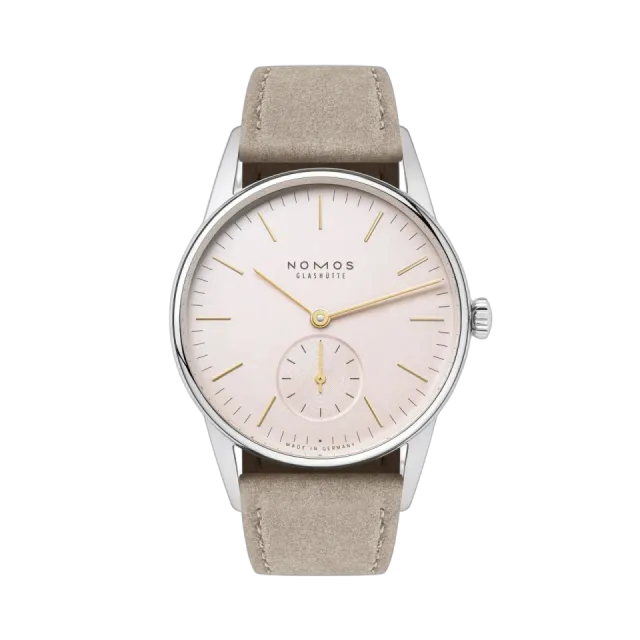 NOMOS Glashütte'nin Orion 33 rose modeli, 33 mm çapı ile zarif kadın bileklerine mükemmel uyum sağlar. Hafif pembe kadranı ve altın renkli ibreleriyle göz alıcı bir estetik sunar. Vegan velur deri kayışı, hem şıklığı hem de konforu bir araya getirir. El yapımı mekanizması DUW 4001, hassas zamanlama ve güvenilirlik sunarken, 5 atm su geçirmezlik özelliği ile günlük kullanıma uygundur. Bu saat, zarif tasarımıyla her kadının koleksiyonunda yer almayı hak ediyor.
