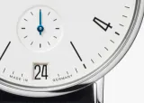 NOMOS Glashütte'nin Tangente date power reserve modeli, 35 mm çapı ile hem erkek hem de kadın bileklerine zarif bir uyum sağlar. Ödüllü tasarımı, el yapımı mekanizması ve patentli güç rezerv göstergesi ile dikkat çeker. Bu saat, kullanıcıya her iki günde bir sarım zamanı hatırlatırken, ekstra büyük tarih göstergesi önemli tarihleri takip etmeyi kolaylaştırır. 6.6 mm yüksekliği ile şıklığı ve işlevselliği bir arada sunar.