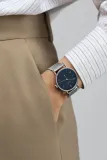 Tangente midnight blue, NOMOS Glashütte'nin klasik tasarımını modern bir yorumla sunuyor. 35 mm çapındaki unisex kasası, zarif altın kolları ve gece mavisi kadranı ile her bileğe şıklık katıyor. Manuel DUW 4001 mekanizması ile güçlendirilmiş bu saat, 53 saate kadar güç rezervi sunuyor. Vegan velur deri kayışı, kadranla mükemmel uyum sağlarken, 5 atm su geçirmezlik özelliği ile günlük kullanıma uygun. Estetik ve işlevselliği bir araya getiren bu saat, zamansız bir parça arayanlar için ideal.