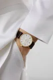 Tangente gold neomatik doré, zarif tasarımı ve 18 ayar altın kasasıyla dikkat çeken bir saat. Minimalist beyaz kadranı, altın renkli ibreleriyle mükemmel bir uyum sağlarken, Horween Genuine Shell Cordovan deri kayışı saatin sıcaklığını artırıyor. NOMOS'un in-house DUW 3001 otomatik mekanizması, hassasiyet ve dayanıklılık sunarak bu saati zamansız bir klasik haline getiriyor. Sadece 6.9 mm kalınlığıyla, şıklığı ve konforu bir arada sunuyor.