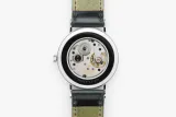 NOMOS Glashütte'nin Tangente 38 modeli, 38 mm çapı ile zarif bir tasarım sunar. Klasik 35 mm versiyonuna göre daha ince ve şık bir görünüm elde edilmiştir. Manüel kurmalı DUW 4001 mekanizması, safir kristal cam arka kapakla görünür hale gelirken, mavi çelik kolları geleneksel saatçilik geleneğiyle 290°C'de ısıtılarak elde edilmiştir. Horween Genuine Shell Cordovan deri kayışı, her bileğe mükemmel uyum sağlar. Almanya'nın Glashütte kentinde üretilen bu saat, hem hassas zaman tutma hem de ödüllü tasarımıyla dikkat çeker.
