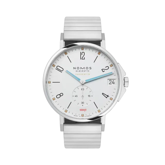 Tangente Sport neomatik 42 date, NOMOS Glashütte'nin en dayanıklı saatlerinden biri olarak öne çıkıyor. 42 mm çapındaki kasa, suya dayanıklılığı ile 1000 ft derinliğe kadar güvenilirlik sunuyor. Geniş tarih göstergesi ve zarif beyaz gümüş kaplama kadranı, neomatik DUW 6101 mekanizması ile birleşerek mükemmel bir görünüm sağlıyor. Superluminova ile aydınlatılan saat indeksleri, karanlıkta bile net bir görünürlük sunuyor. Şıklığı ve konforu bir arada sunan bu saat, her anınıza eşlik edecek.