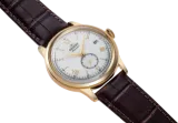Orient Bambino 38 Small Seconds, zamansız şıklığı ve modern işlevselliği mükemmel bir şekilde harmanlayan bir saat. 38.4 mm'lik ince kasası ve zarif gümüş kadranı ile günlük kullanım için ideal bir seçenek sunuyor. Küçük saniye alt kadranı, tasarımın dengesi ve uyumunu artırırken, F6222 otomatik hareketi ile güvenilir bir doğruluk sağlıyor. Yüksek kaliteli kahverengi deri kayışı ile tamamlanan bu saat, klasik zarafeti modern detaylarla buluşturuyor.