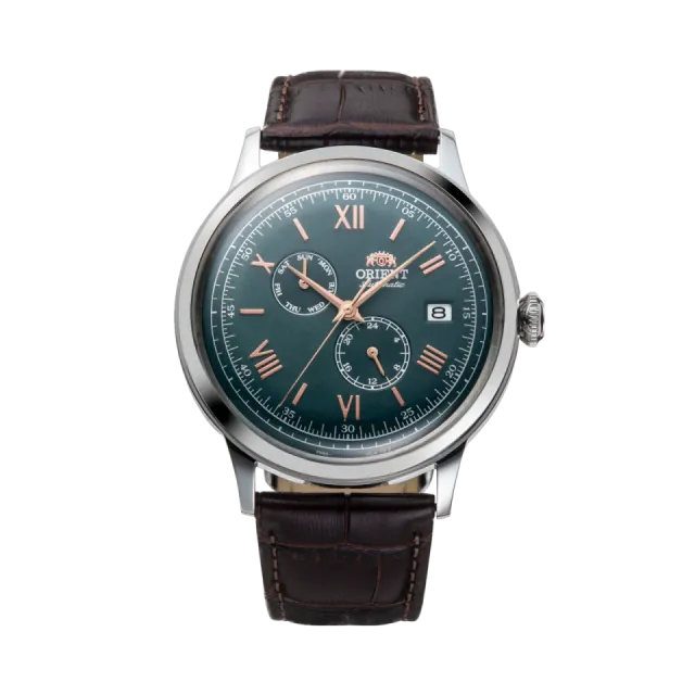 Orient Classic Multi-Dial, modern ve klasik unsurları bir araya getirerek şıklığı ve işlevselliği mükemmel bir şekilde harmanlıyor. Bu zarif saat, gün ve tarih göstergeleri ile 24 saat alt kadranları sayesinde günlük kullanımda pratiklik sunuyor. 40.5 mm paslanmaz çelik kasası ve şık yeşil kadranı ile dikkat çeken bu model, otomatik F6B22 mekanizması ile 40 saatlik güç rezervi sağlıyor. Klasik bir görünüm arayanlar için ideal bir tercih.