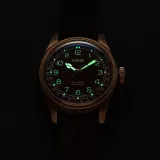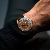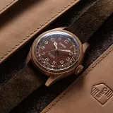 Oris Big Crown Bronze Pointer Date, 40 mm bronz kasası ve kahverengi deri kayışıyla klasik pilot saati karakterini modern mekanik hassasiyetle buluşturuyor. 28,800 A/h salınım hızına sahip otomatik kalibre 754 hareketi ile 38 saat güç rezervi sunan bu saat, suya dayanıklılığı ve zamansız tasarımıyla prestijli bir koleksiyon parçasıdır.