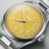 Oris Big Crown Tarih İbreli modeli, 40 mm paslanmaz çelik kasası ve güneş sarısı kadranıyla klasik ve şık bir tarz sunar. İsviçre yapımı otomatik mekanizması ve dayanıklı H-link bileziğiyle günlük kullanıma ideal, zamansız bir pilot saati.